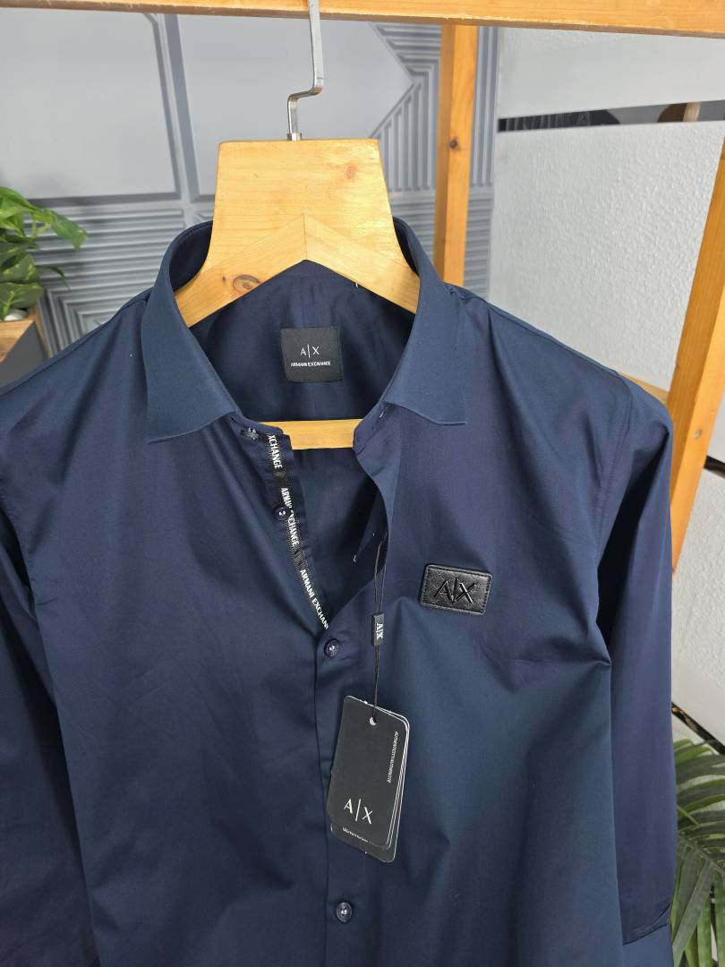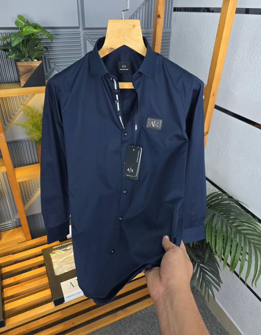 Tommy_Hilfiger Navy Embroidery Logo Oxford Lycra Premium Shirts F2626-NY