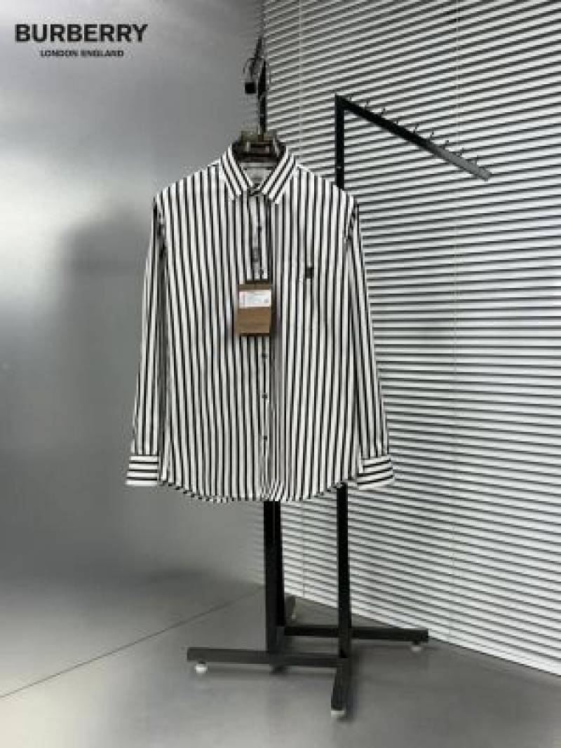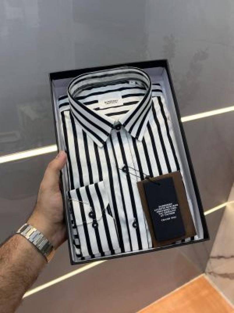 Burberr y Grey Premium Imported Embroidered Logo Shirt with custom Branded Button Tagging And Brand Packing 3251