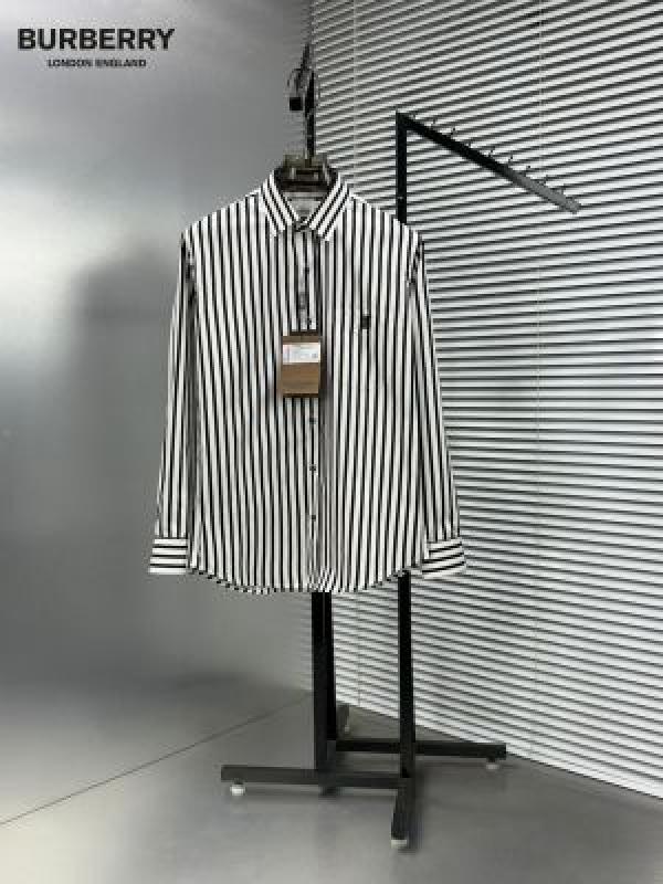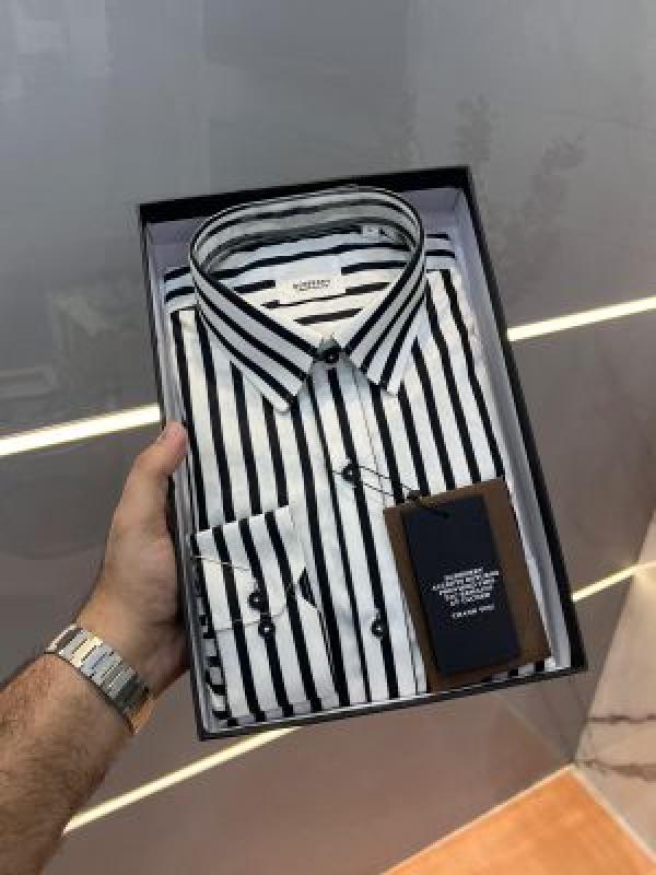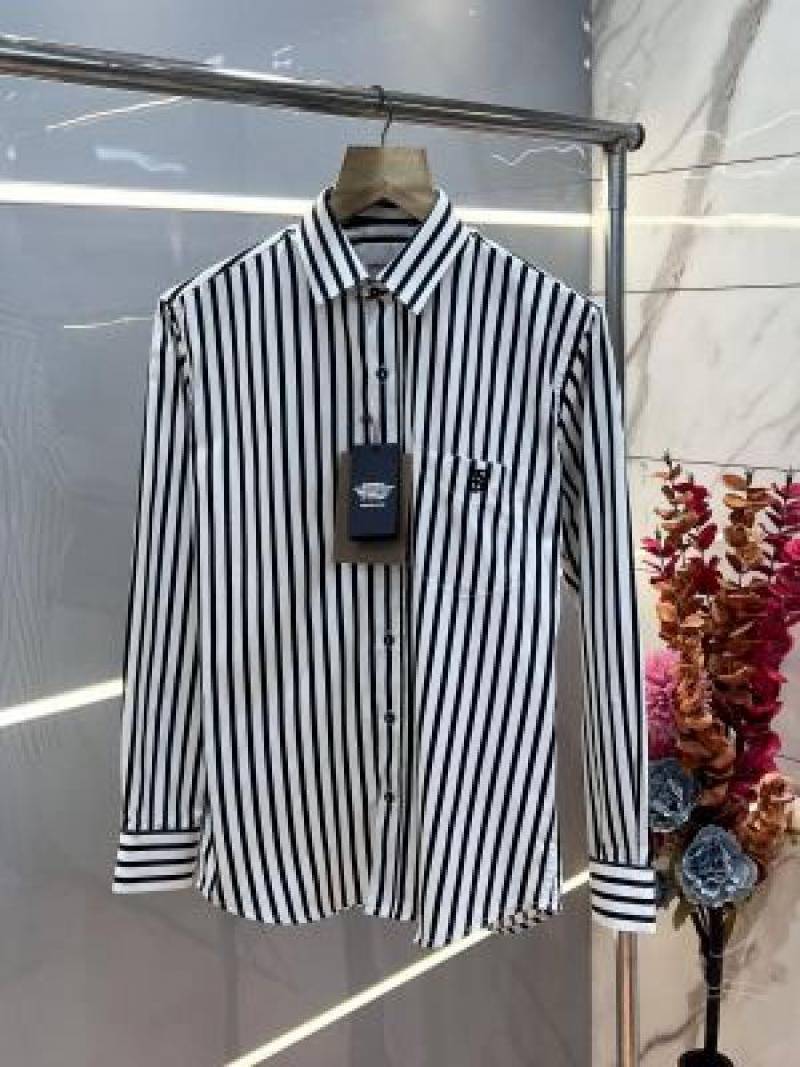 Burberr y White Premium Imported Cotton twill fabric Embroidered Logo Shirt with custom Branded Button Tagging And Brand Packing 3256