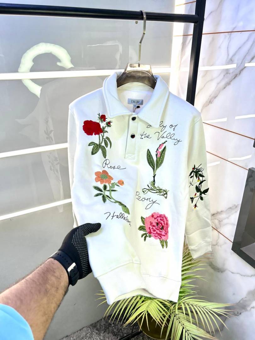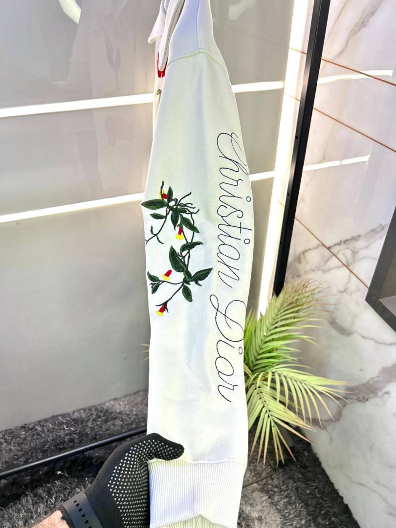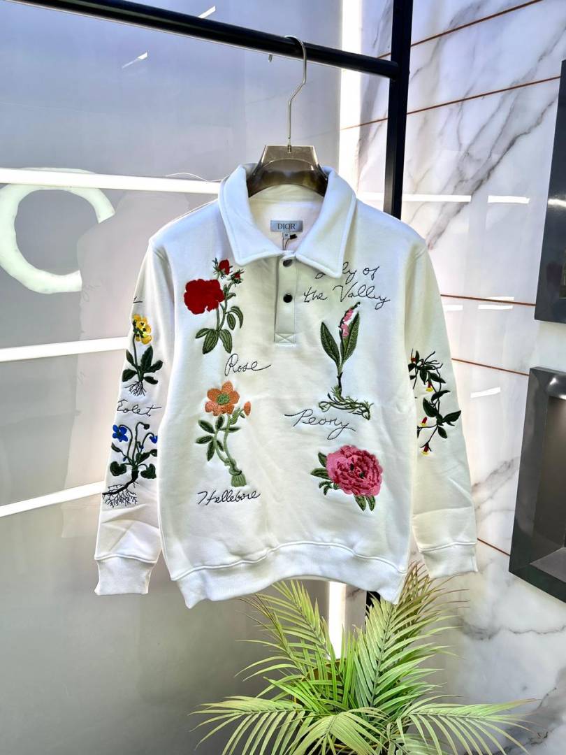 Christian Dio r Imported Allover Embroidery Print Premium White Sweatshirts F3230-WH