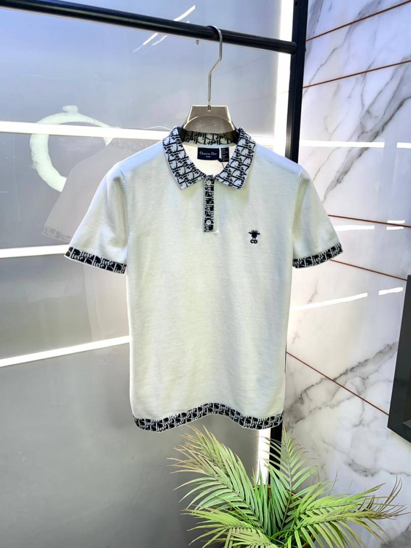 Christian Dio r White Imported knitted Premium Collar Neck Polo T-shirt F3488-WH