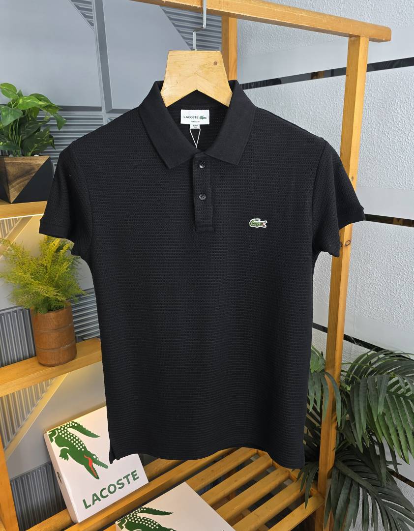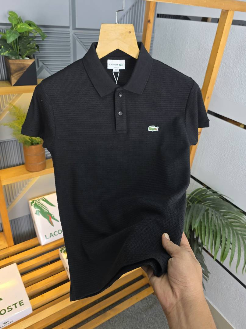 Lacost e Black Premium Cotton Pique fabric Polo Tshirt with Front Design and Embroidered Logo 3538