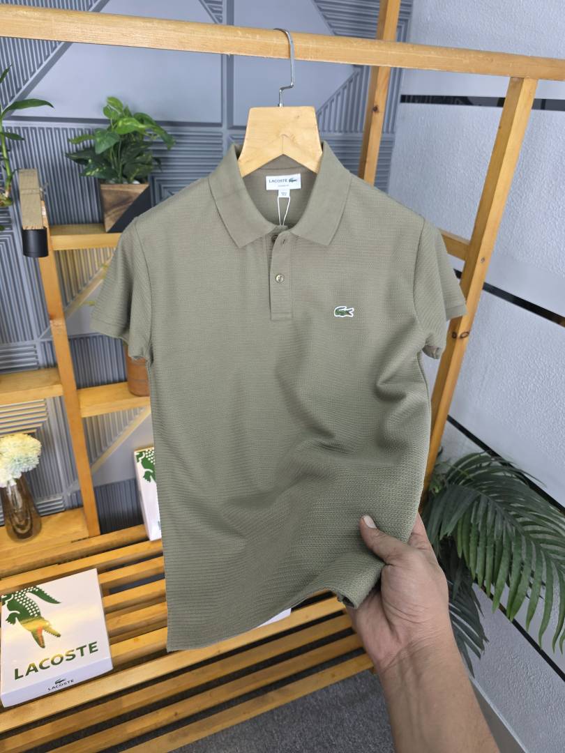 Lacost e Beige Premium Cotton Lycra Pique fabric Polo Full Sleeves Tshirt with Collar Design and Patch Logo 3292
