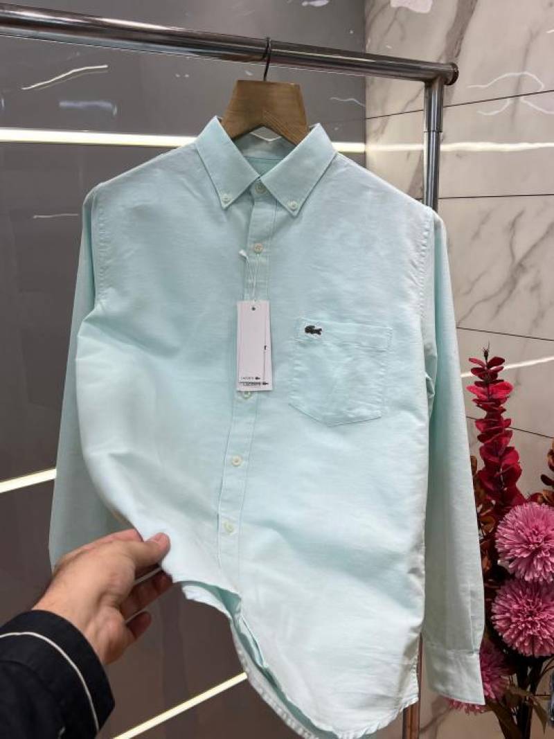 Lacost e Green Premium Shirt 100% Oxford Cotton Fabric With custom Branded Button Tagging And Brand Poly Bag 3444