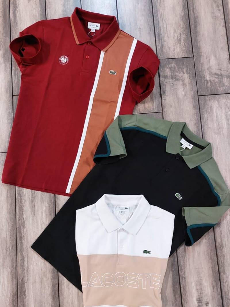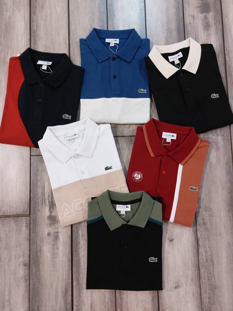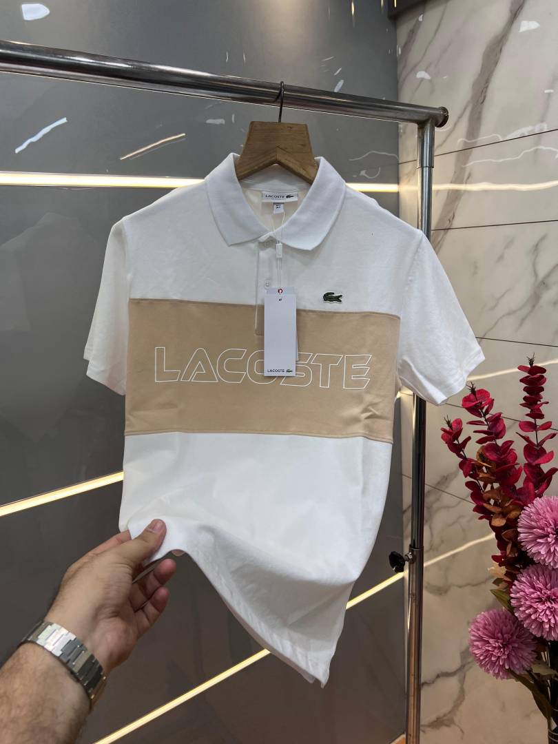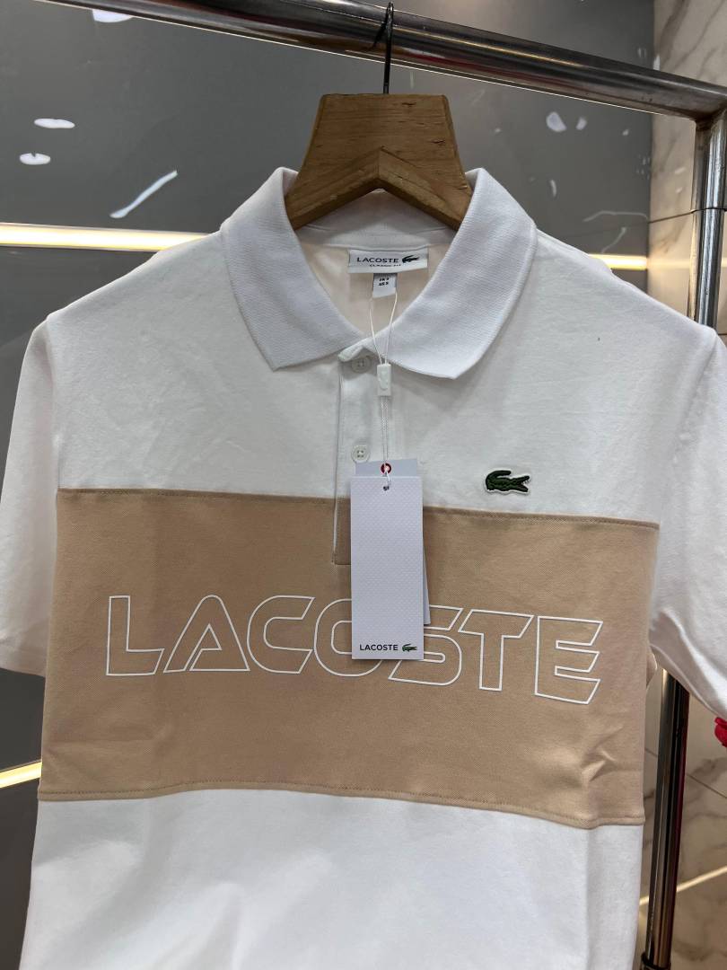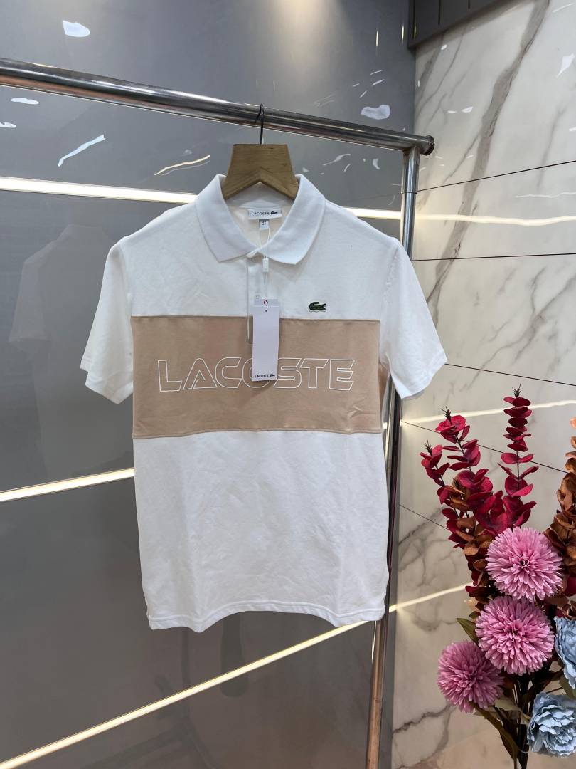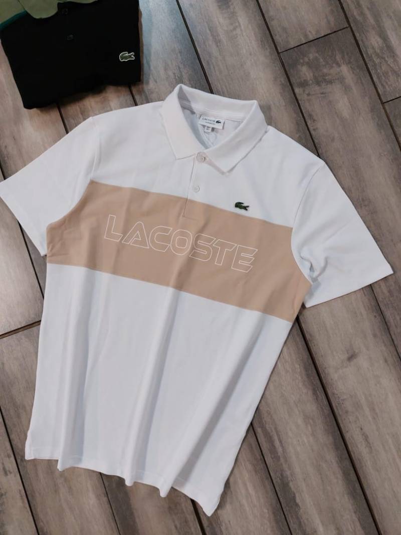 Lacost e White Premium Cotton Pique fabric Polo Tshirt with Front Design and Embroidered Logo 3543