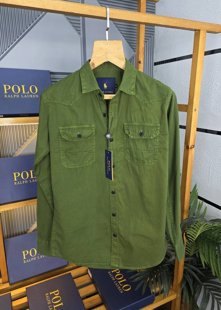 Plain Denim Shirt With Regular Collar With Full Sleeve Style